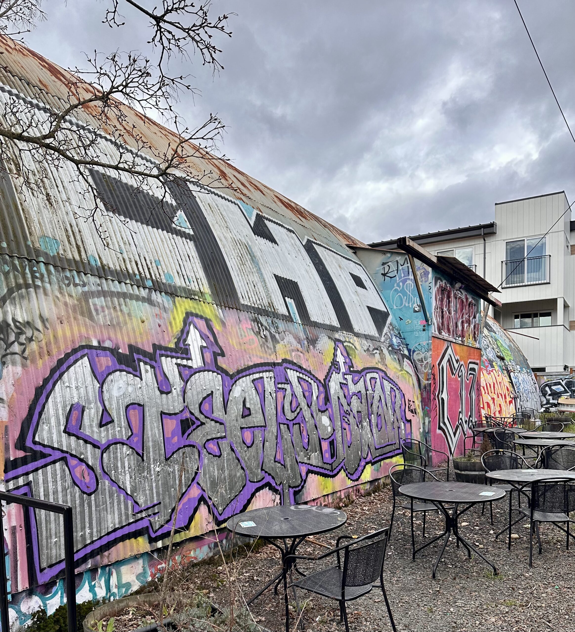 Corrugated metal fences, garden beds, and creative building materials are everywhere. At first it can look a little rough around the edges, but the more time you spend here, the more it feels intentional. Trendy without trying too hard. A little scrappy. Very Portland.