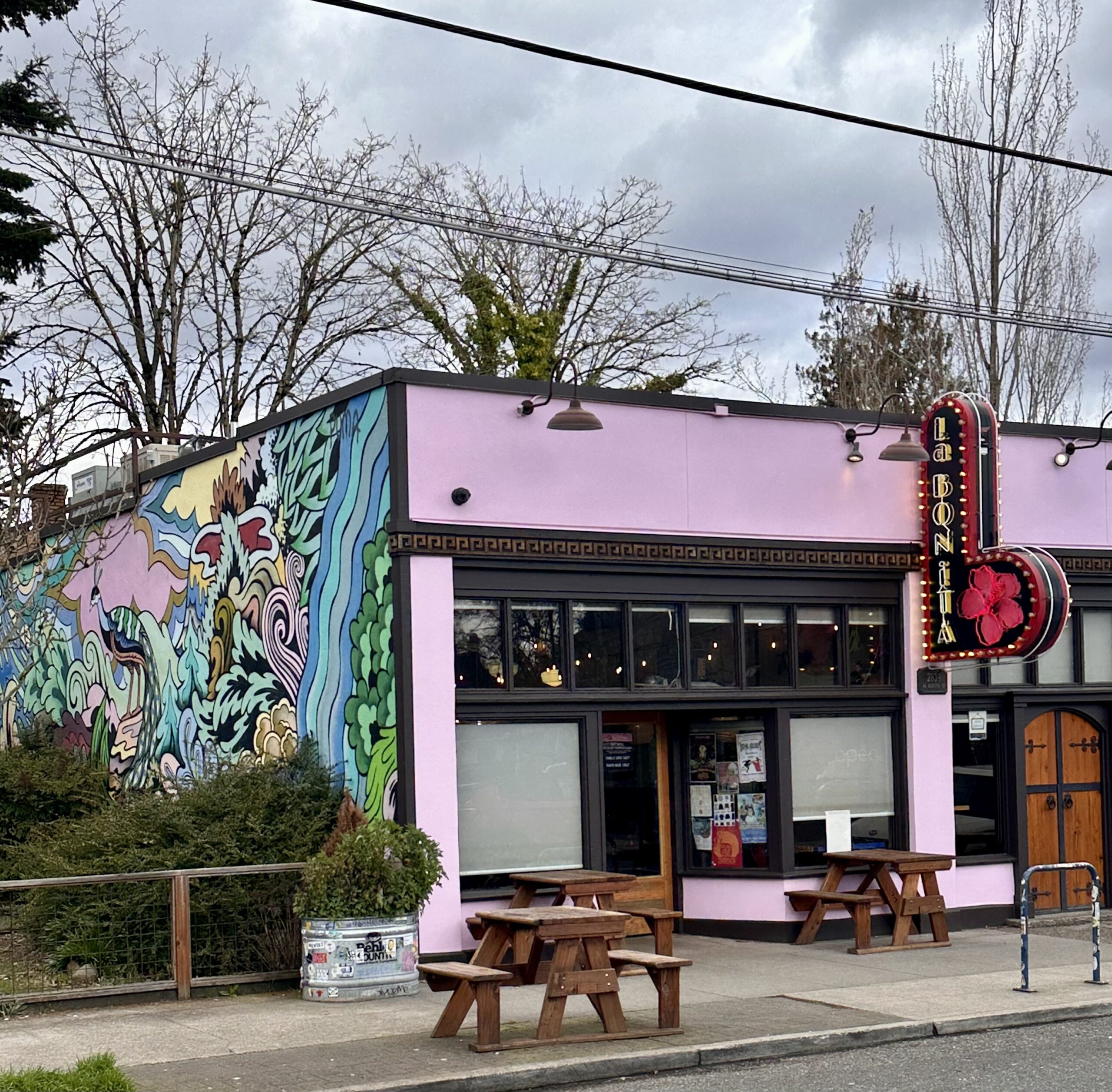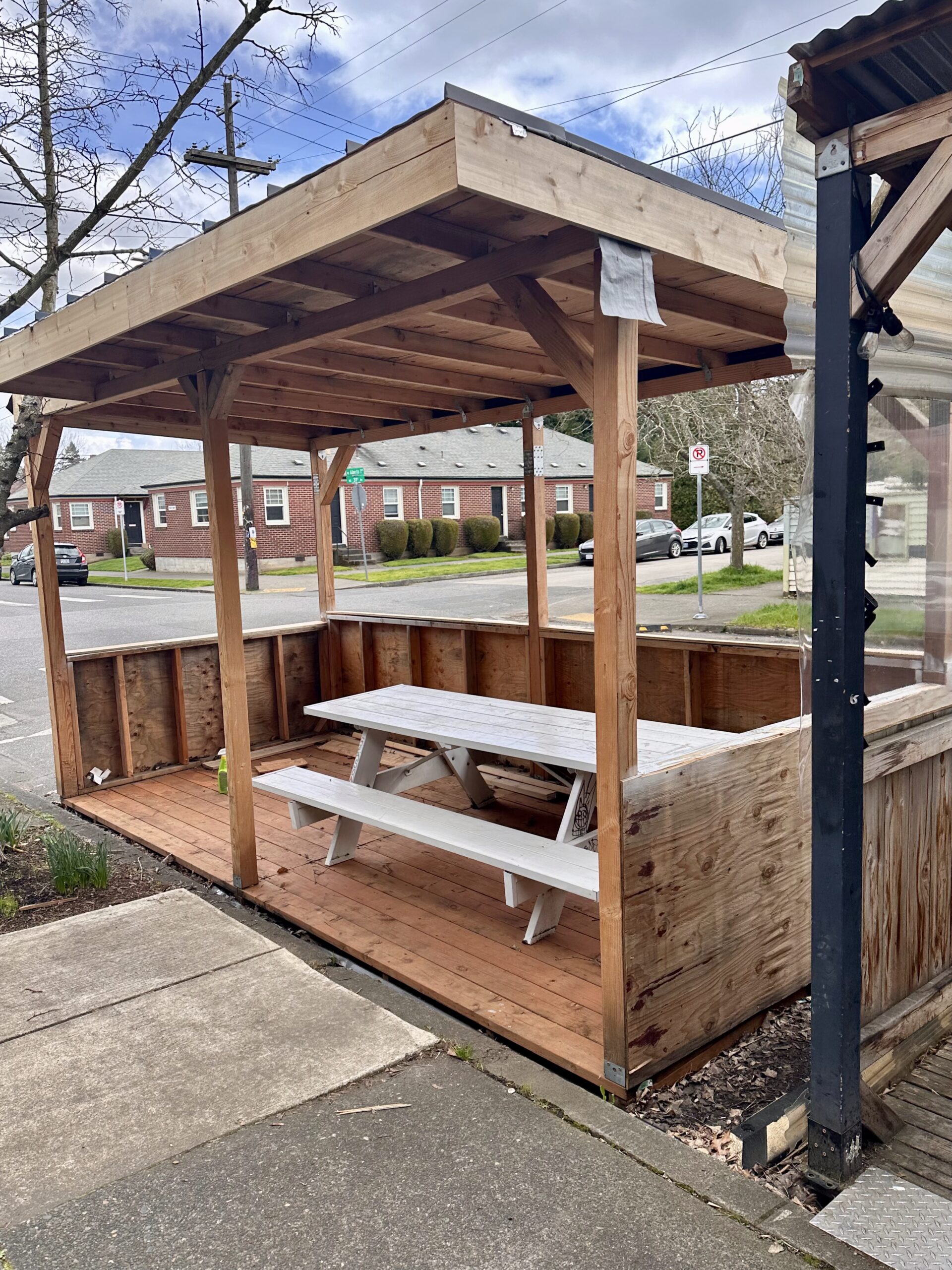 Outdoor dining “cubbies” that first appeared during the pandemic have become a permanent Portland staple here. Parking spaces have transformed into little clusters of picnic tables, giving restaurants and bars room to spill out onto the street.